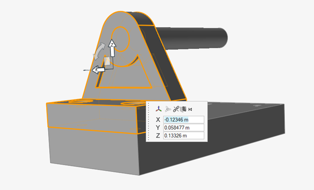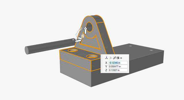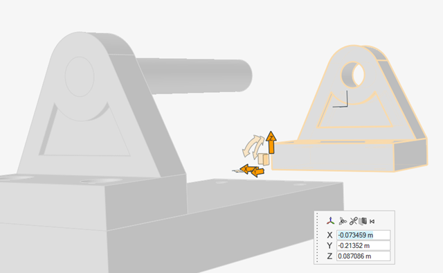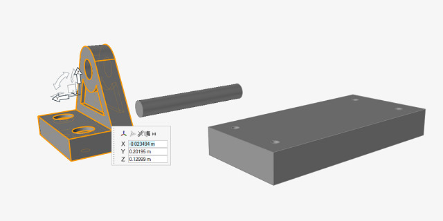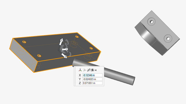 按住 Ctrl+C,然后按住 Ctrl+V,复制并粘贴托架。新复制的零件与源零件重合在一起,“移动”工具会自动显示。