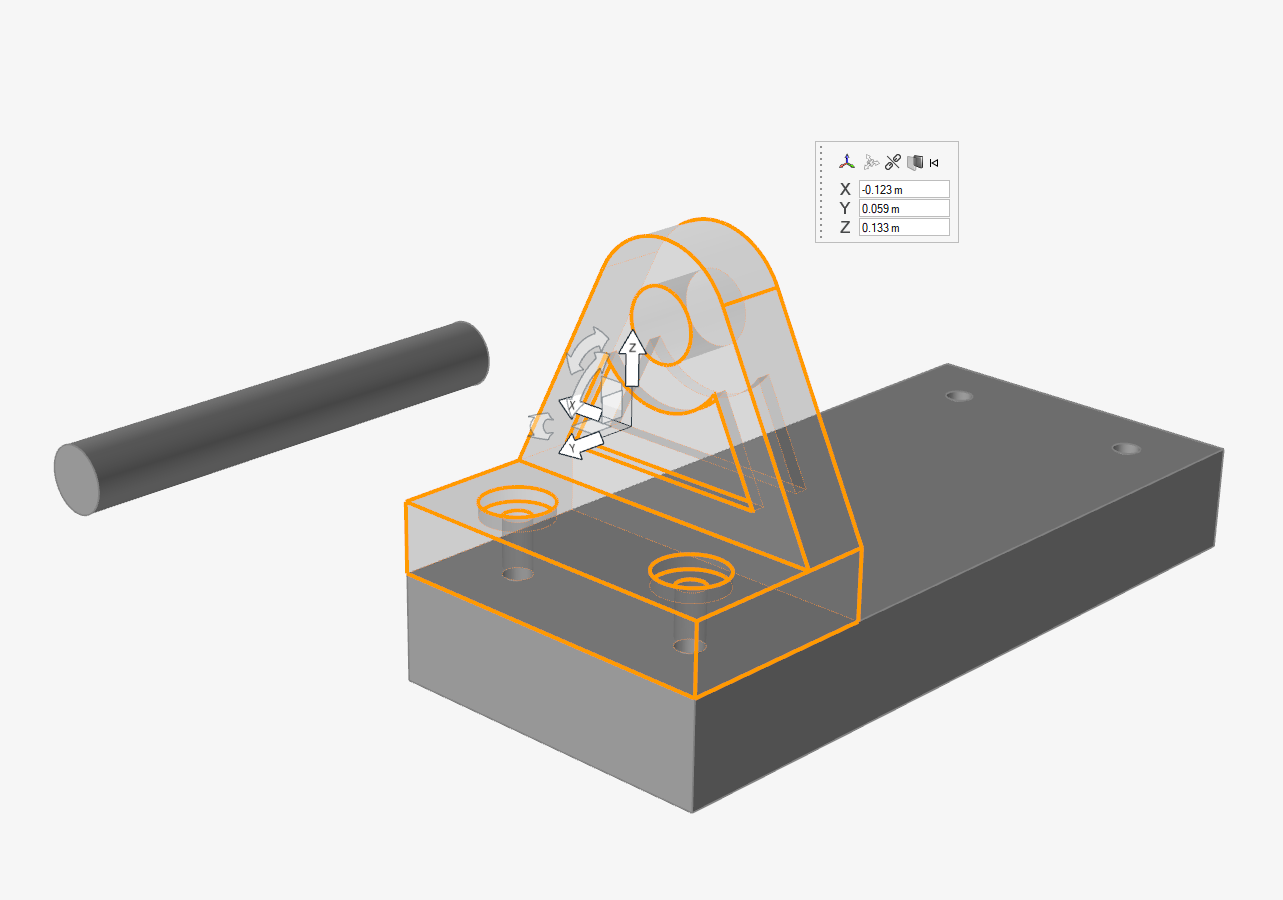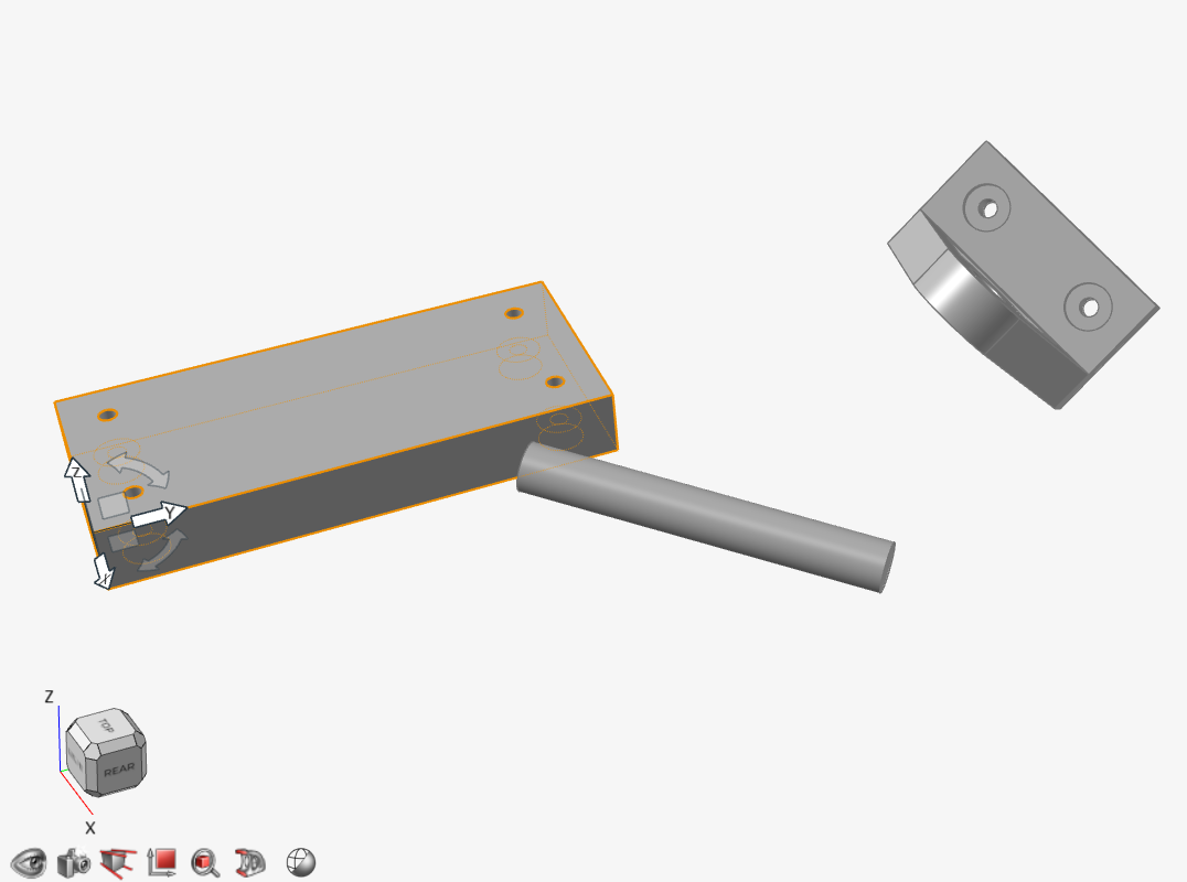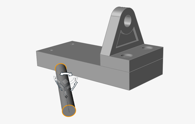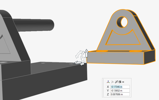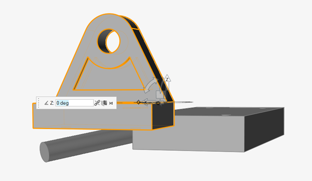 选中“移动”工具 z 轴的尖端,然后选中底座的顶部。这将旋转托架,使其也与底座零件的顶面对齐。