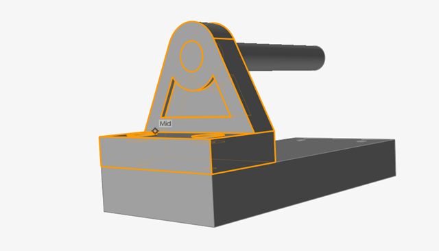 选中“移动”工具 y 轴的尖端,然后选中离托架最近的底座的侧面。这会让托架与面对齐并保持平行。