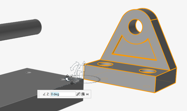 点击托架顶部孔的内表面,使铰接对齐托架。您可能需要放大,以确保选择内表面,而不是孔的中心点。