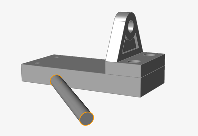 点击销将其选中。然后将鼠标悬停在销端的中心。拖动中心捕捉点以将其捕捉到托架孔端中心。