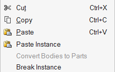 - 要打断零件和关联复制之间的连接,右击关联复制的零件并选择右键菜单上的打断关联复制。要打断所有关联复制,框选所有关联复制的零件,然后选择“打断关联复制”。如果选中的零件属于某个装配,选择“打断关联复制”将在发现选中零件处打断初始装配和关联复制的装配之间的连接。最佳实践是在创建铰接、刚体组或其他连接之前就打断关联复制,否则关联复制可能被删除。