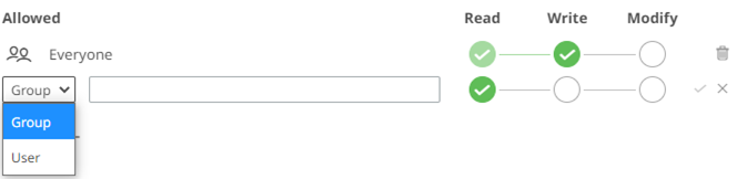 - Select User or Group to be given permission in the drop-down list.
