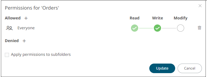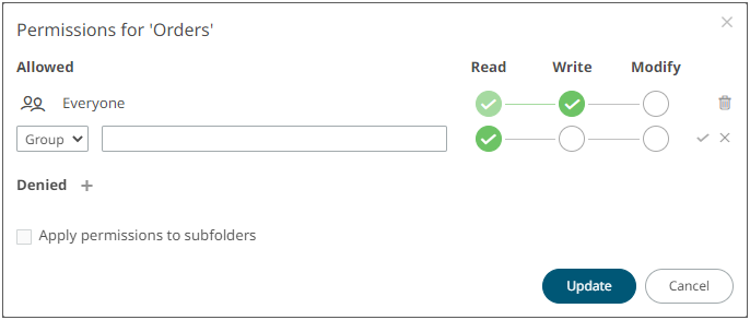 - Select the Apply Permissions to Subfolders checkbox