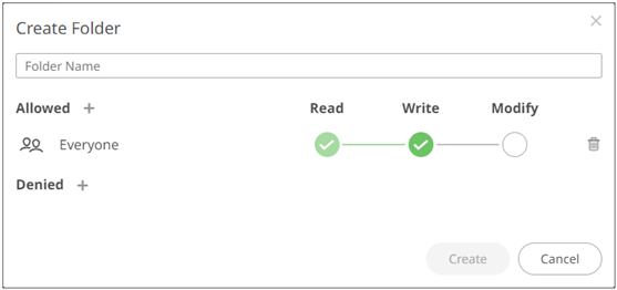 - The default group permissions on the root folder are WRITE + READ.