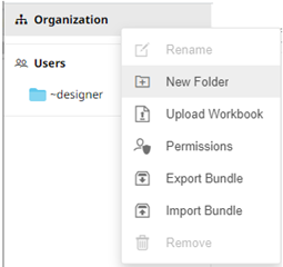 - On the Workbooks tab, right-click on the topmost folder, and select New Folder.