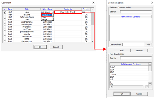 6. List Select: Set the design’s component properties in the Select Comment dialog.