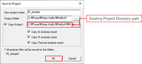 You can enter a new project name and select the project folder to put in the design folder. If a PollEx PCB design project is already existing for the PCB design, instead of creating a new design project, you can share the PollEx PCB design project by selecting the PollEx PCB design project folder for the new project name.