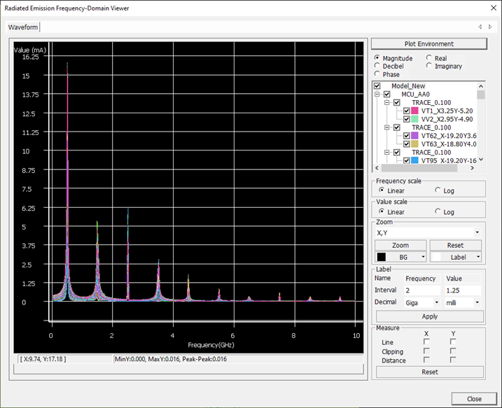 Radiated Emission Frequency-Domain Viewer will be open and current of net will be