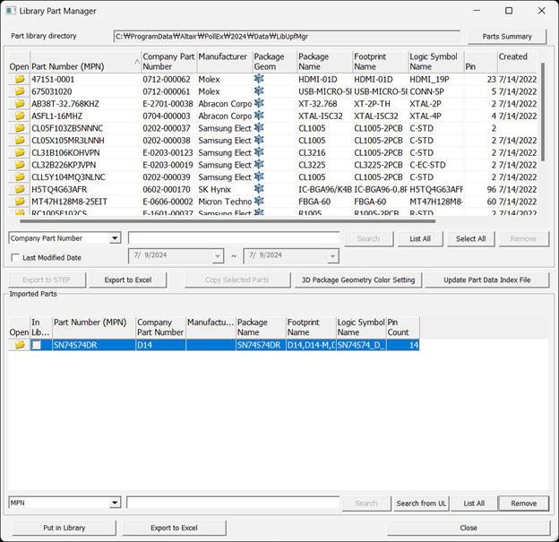 4. Put in Library: Move the selected UPF library in the Imported Parts table to the Part Library Directory.