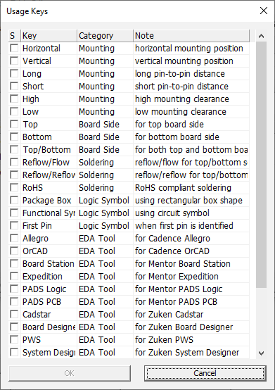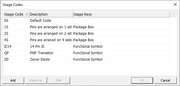- Usage Keys: Display the usage keys which are assigned the usage code.