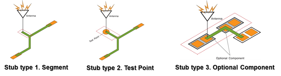 - However, a certain type of stub has an intended purpose. One of such examples is a test point. If a pattern is branched to make a test point, this structure act as an antenna.