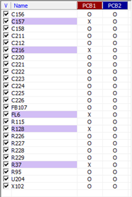 C157 exists in PCB 2 only. In the PCB 1 window, there is no C157 with