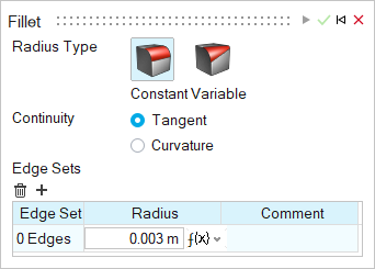 - Constant: Create fillets with the same radius for every edge.