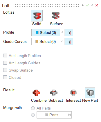 • All Parts (default): Merge the loft with all parts that touch it.