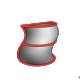 • Tangent (G1): The loft surface is made tangent to the surface edge but does not follow the curvature of the adjacent surface. A box is displayed on the profile to indicate that a tangency constraint was applied.