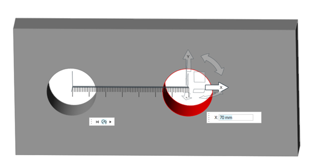 To Do this Translate Drag the selected faces. Translate along an axis Drag the arrows. Translate within a plane Drag the squares. Rotate around the center of the tool Drag the curved arrows Move features freely in 3D Drag the center of the tool Move features a precise distance Enter a value in the microdialog. - Right-click and mouse through the check mark to exit, or double-right-click.