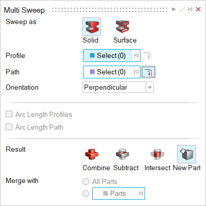 • New Part: Create a new part from the swept shape.
