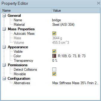 Properties such as a name, material, and color can be assigned to various