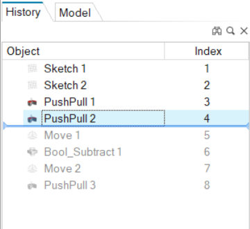Use the History Browser to explore variations on your model’s design without creating additional models.