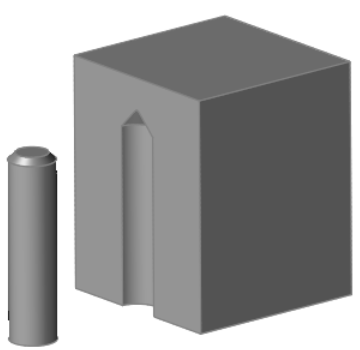 Note: You can also use the end marker to advance through the model’s construction history step by step.In the example above, we added a chamfer to the top of the cylinder prior to the Boolean subtract construction feature.Inspire PolyFoam automatically recomputes the subsequent Push/Pull construction feature, taking the added chamfer into account. Note that the top of the cylindrical cutout is conical in the final model.