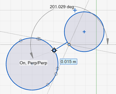 Perp/Perp When you sketch a line between two circles, the Perp/Perp inference helps you make the line perpendicular to both circles.