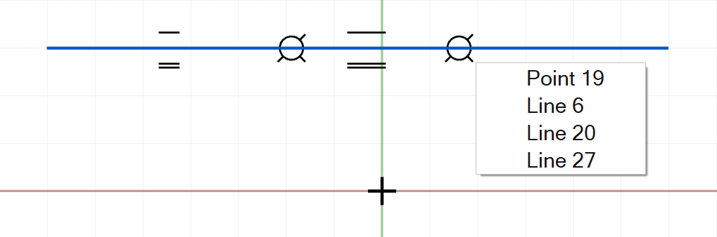 Two sketch entities are constrained to be symmetric about a construction line (e.g., mirrored curves). Note: This constraint can only be applied from the sketch constraint context menu when two entities and a construction line are selected.Select Other This is not a constraint. Select this option when selecting overlapping sketch entities to specify which sketch entity you wish to select.