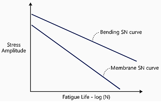 The upper and lower curves are referred to as bending S-N curve and membrane S-N