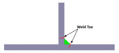 These are the locations where the fatigue damage will be evaluated.Figure 1. Fillet weld cross-section showing likely failure locations