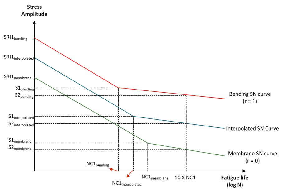 Interpolation is made between the bending and membrane SN curves based on the degree