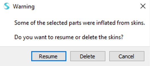 Note: If you delete a laminate, the following warning is posted. Click Resume to retain the skins or select