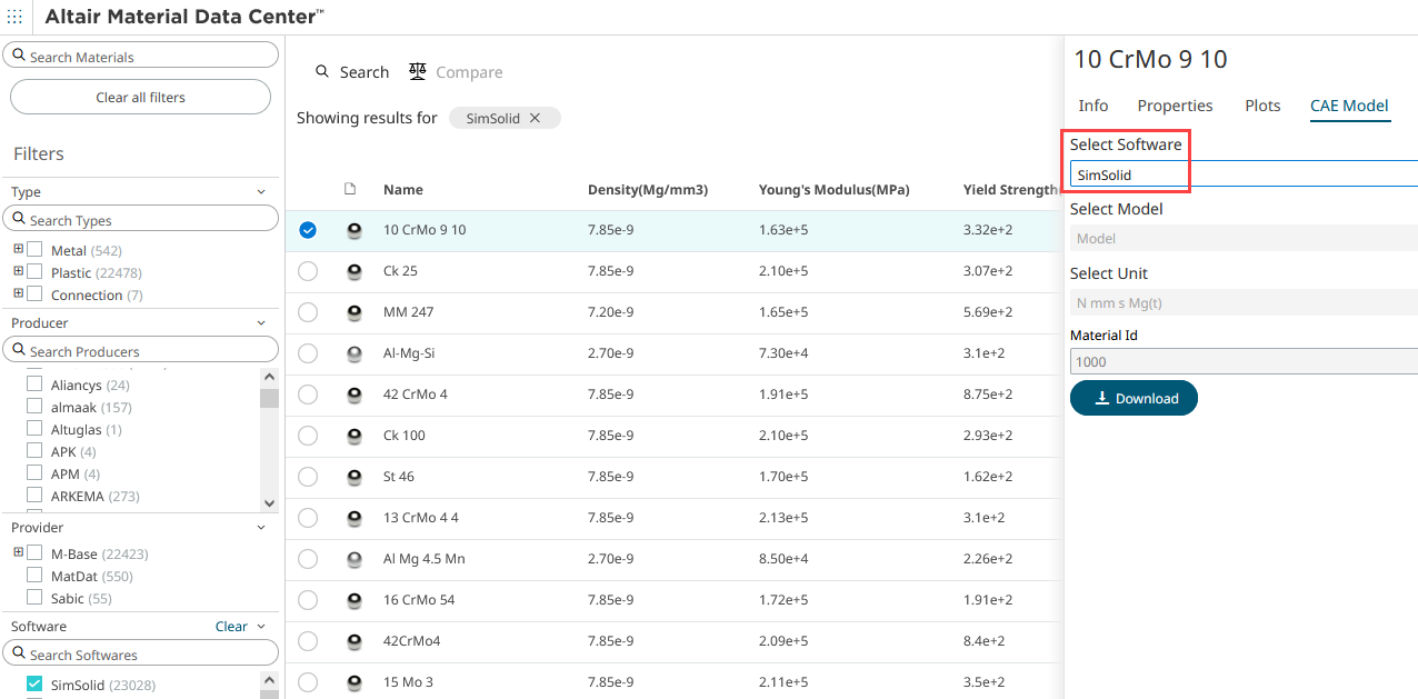 Use material data from Altair Material Data Center in SimSolid.