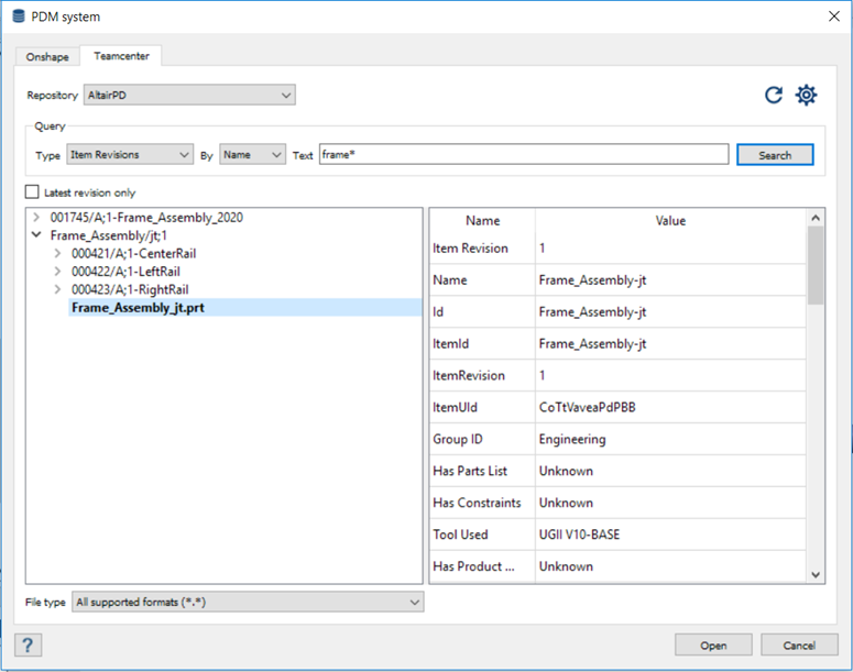 Teamcenter versions 10.0 to 14.3 are currently supported.