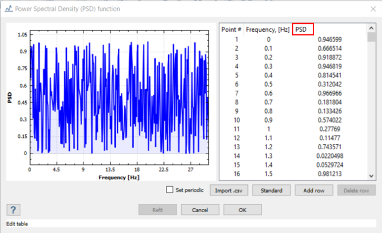 Units for PSD function depend on the boundary condition. In this example, as base excitation is given as acceleration, the unit for PSD is (mm/s2)2/Hz.Figure 1.