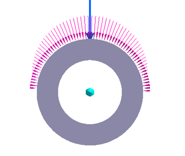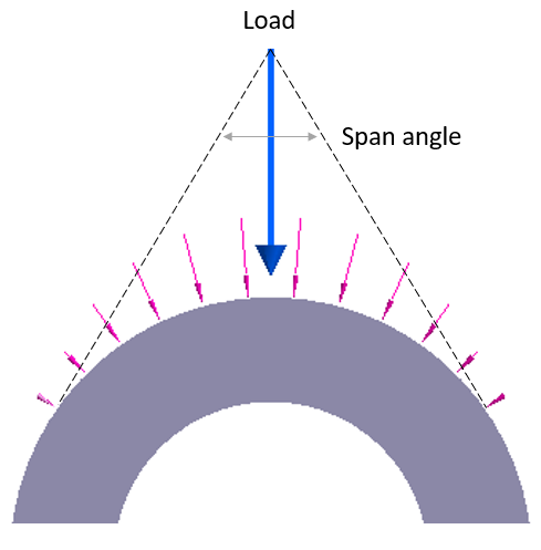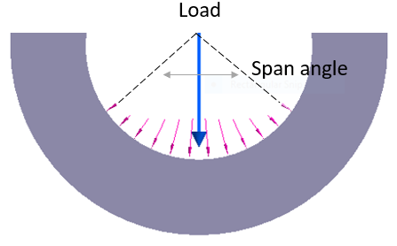 The load is applied as a pressure, whose magnitude is spread using a sinusoidal distribution over the Load span angle. In Non-linear Structural analysis, bearing pressure is assumed to be a follower load as it follows the Part geometry change when large deformations occur. Pressure always remains normal to the deformed face of a Part.