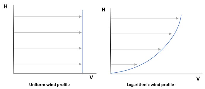 distribution or logarithmic progression of wind speed concerning the height above