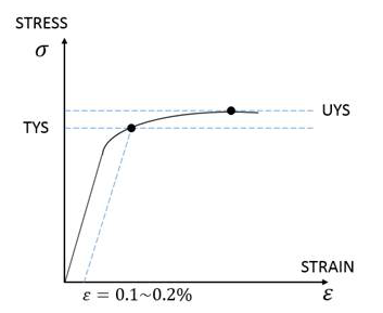 Many steels, especially heat-treated materials, do not have a well-defined elastic limit. In this case, the yield strength is usually defined at the point where the plastic strain is about 0.1% to 0.2%
