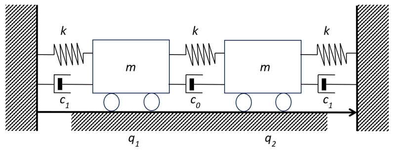• Rigid body, m = 1 kg, k = 1 N/m, c0 = 1 Ns/m, c1 = 0.1 Ns/m