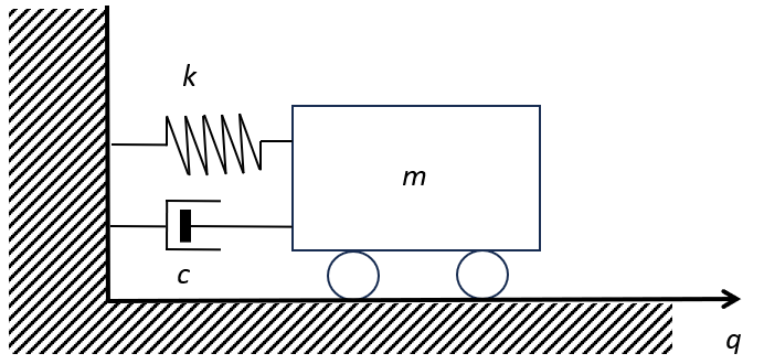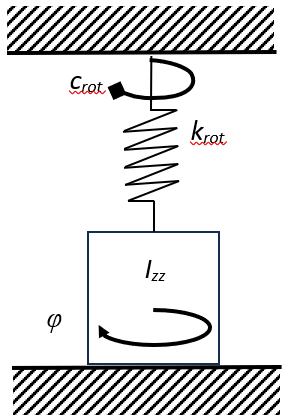 - Steel or rigid body, m = 0.00784998 [kg], k = 1[ N/m], c = 0.1 [N·s/m], Izz = 1.30833e-07 [kg·m2] , krot = 1[N·m/rad], crot = 6.0e-04 [N·m·s/rad]