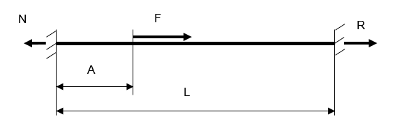 Test No. VNL04 Find reactions at the fixed ends and maximum displacement of a bar axially loaded beyond plasticity.