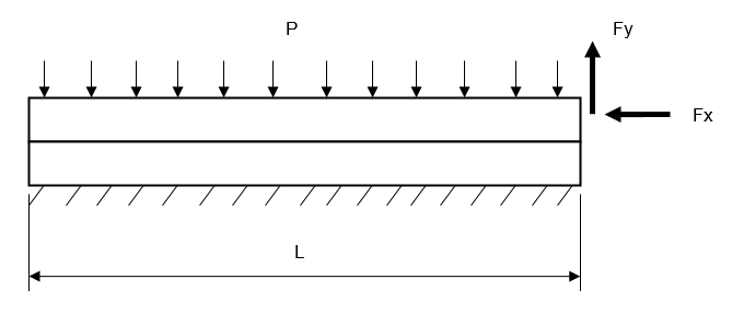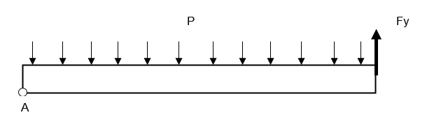 distributed over the surface. The right end of the upper beam is loaded either with