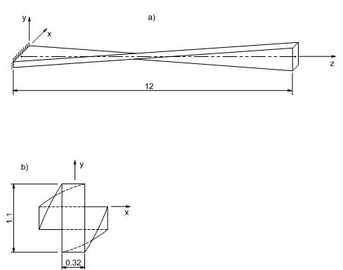 A cantilever beam, twisted by 90 degrees, is subjected to two different until loads at the