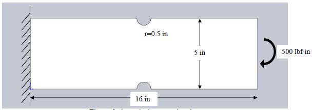 The left face is fixed. The load is a moment of 500 lbf-in applied to right face.