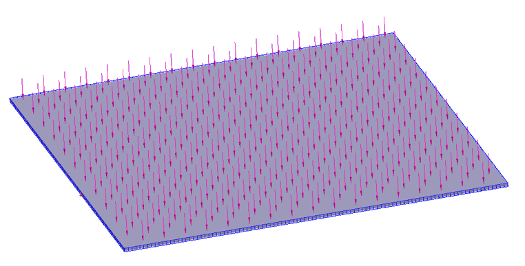 The plate is simulated as a 3D solid body. Spot-lines were created at the mid-plane