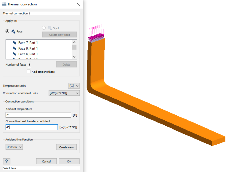 - For Convective heat transfer coefficient, enter 40 W/m^2*K.