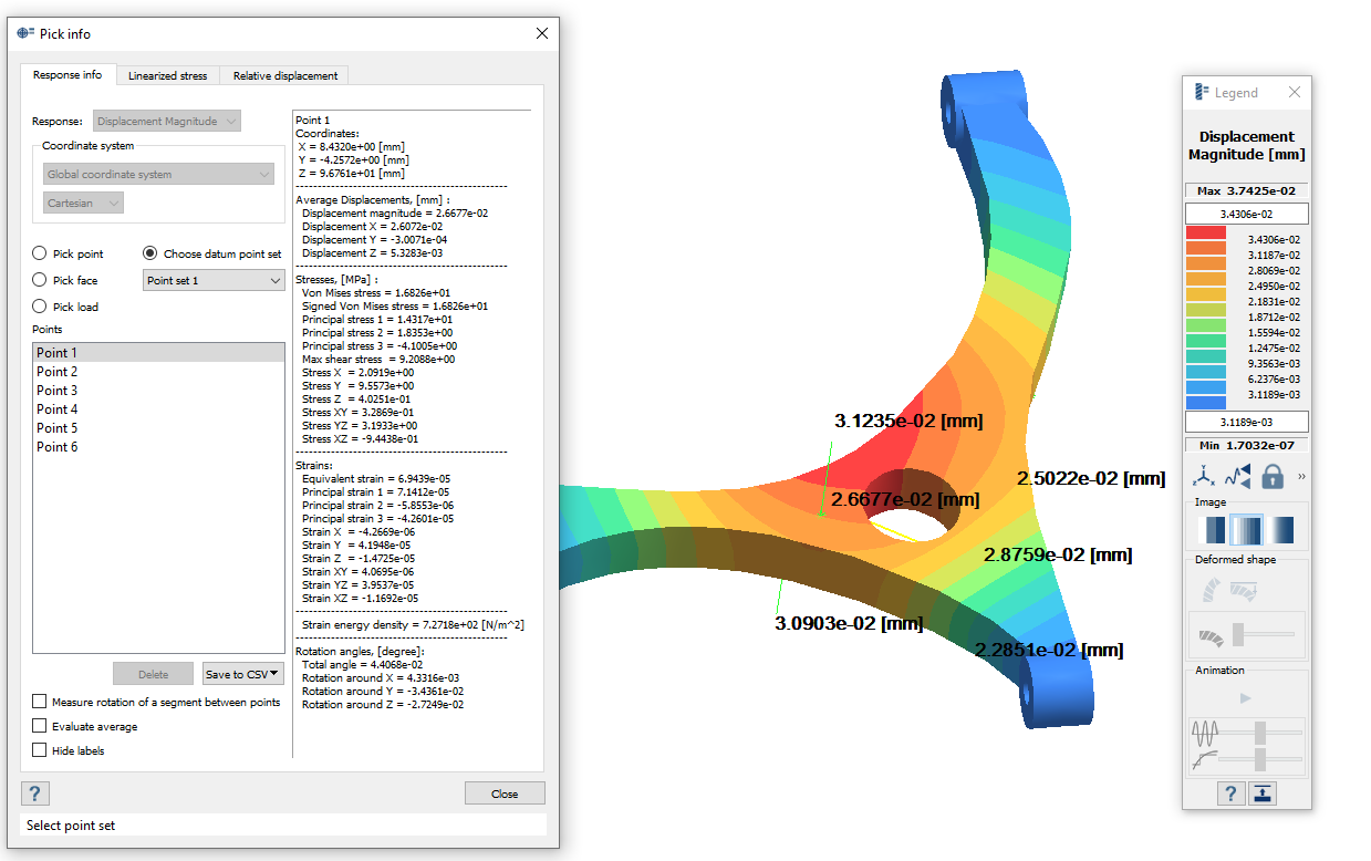 所选点集将显示在对话框中。可以在各点之间切换,查看每个点的信息。为各点绘制的云图值都将显示在模型视窗中。
