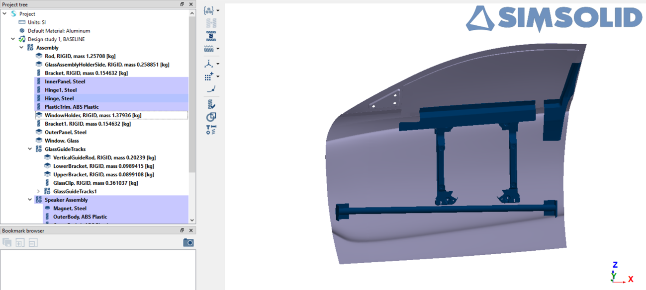 在 SimSolid 中设置车门装配中的刚体零件。