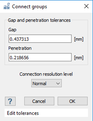 - 接受默认的间隙和穿透容差,然后点击确定。