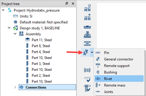 所有有效铆钉都在对话框中以黑色显示。失败的铆钉在对话框中高亮为红色,在模型视窗中高亮为黑色。