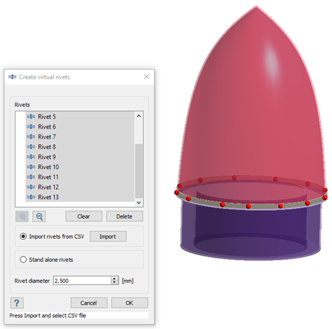 - 在对话框中,选择从 CSV 导入铆钉单选按钮。